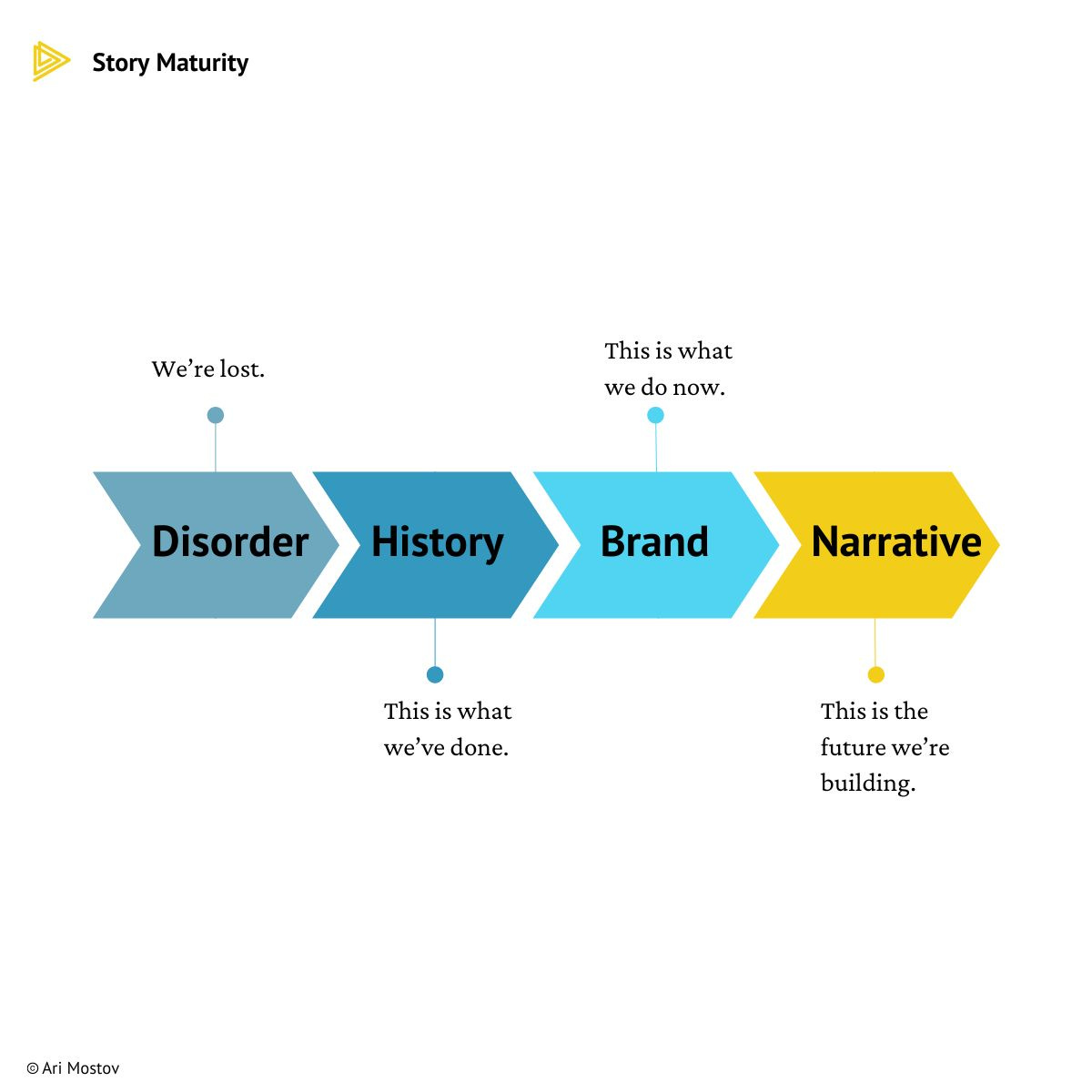 How would you define your organization or team's story maturity? Do you find yourself struggling to move past your history? Are you lost in disorder? Or do you have a sense of how you want to build the future?